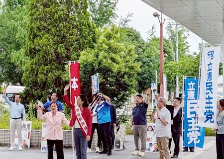 6月7日、バンテリンドーム前で愛知県連として田島まいこ参議院議員を先頭に街頭活動。