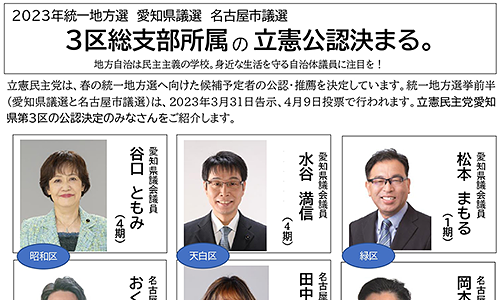 立憲民主党愛知県第3区総支部 自治体議員選挙公認者紹介