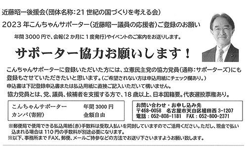 2023年こんちゃんサポーター登録のお願い