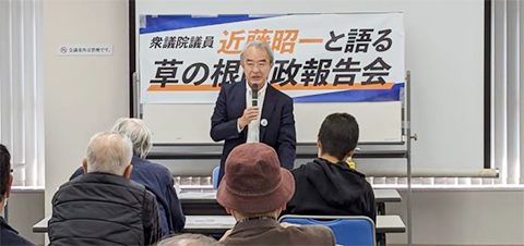 国政報告会を各区(昭和・天白・緑区)で開催し、多くの方にご参加いただきました。臨時国会を振り返り、以下の三点を中心に話しました。