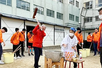 12月は地元各地で恒例の餅つき大会が行われる。新型コロナが5類になり4年ぶりの開催となり、盛り上がる。