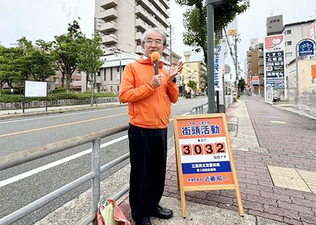 5月26日、近藤議員の誕生日当日朝の街頭活動。
