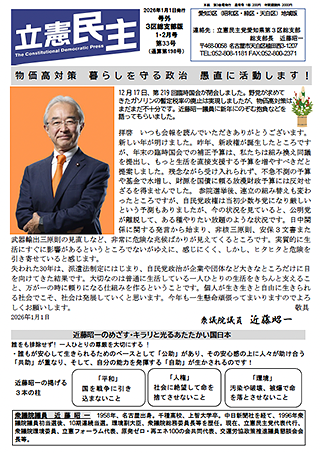新しい年が明けました。昨年、新政権が誕生したところですが、年末の臨時国会での補正予算は、私たちは組み換え同議を提出し、もっと生活を直接支援する予算を増やすべきだと提案しました。残念ながら受け入れられず、不急不測の予算や基金で水増し、財源を国債に頼る放漫財政予算には反対せざるを得ませんでした。