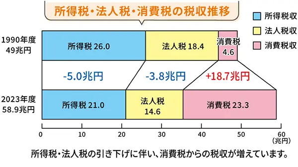 税は社会を動かすために必要ですが、負担できる能力に応じて徴収されていかなければなりません。しかし、現在は所得の低い人にも同じようにかかる消費税を増やし、所得の高い人の所得税、大企業の法人税が大きく引き下げられています。いま必要なのは、普通に働く人の暮らしを立て直すことです。消費税に頼るのではなく、所得税の見直しや、利益を出している法人からの税収を高め、その税収を格差是正のために配分し、低くなった労働分配率をあげていくことが必要です。中小企業には、国が社会保障料の一部を補填するなどの支援をします。最低賃金と労働生産性は相関しているため、労働生産性が上がれば、GDP1%の上昇で税収が1兆円は増えます。また給与増にともなって、国内消費が上がれば国の税収も上がります。普通に働く人々の生活を守り、ボトムアップを実行する。そのための施策を進めていきます。